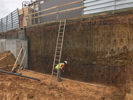 El corte es muy vertical, pero el terreno se comporta y aguanta con gran seguridad, no se cae ni un bordillo. La rapidez en los trabajos de armado, encofrado y hormigonado es muy importante, toda la operación se realiza en el mismo día.